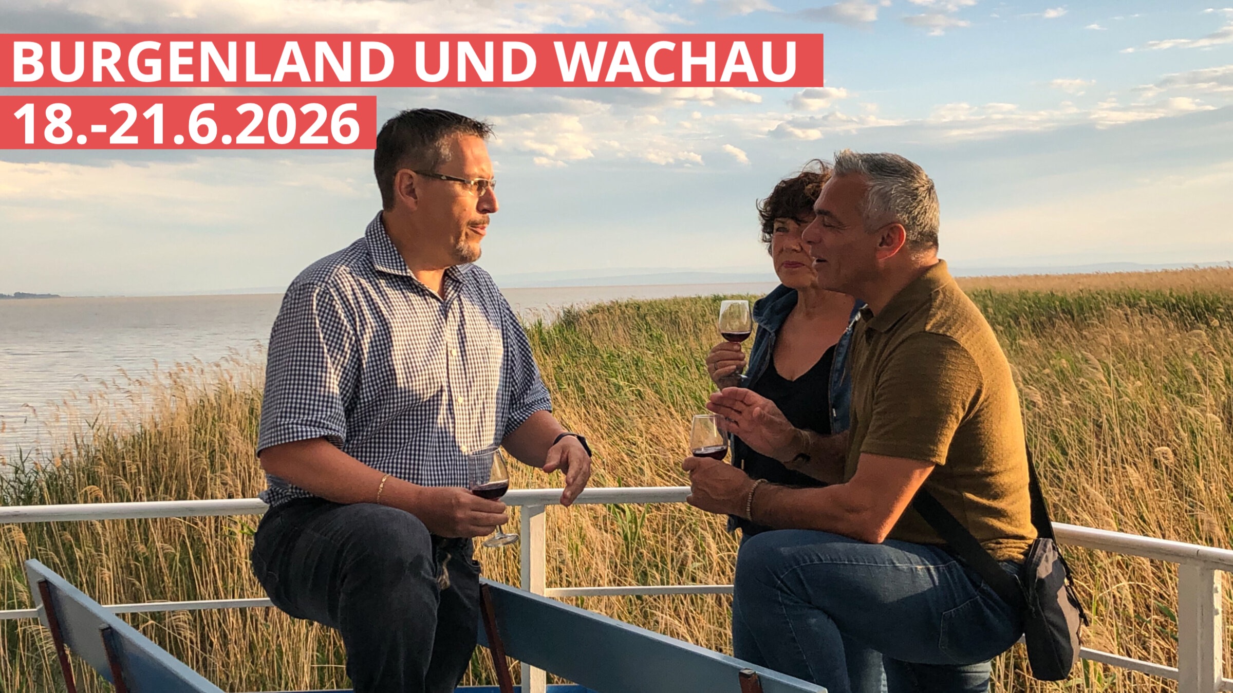Ein besonderes Highlight erwartet Sie am Neusiedlersee – mit exklusiven Weindegustationen, bei denen Sie das Reifepotenzial österreichischer Rotweintrauben hautnah erleben. Direkt von den Winzern erfahren Sie spannende Details zu den Weinen und geniessen dabei regionale Spezialitäten an besonders stimmungsvollen Orten.